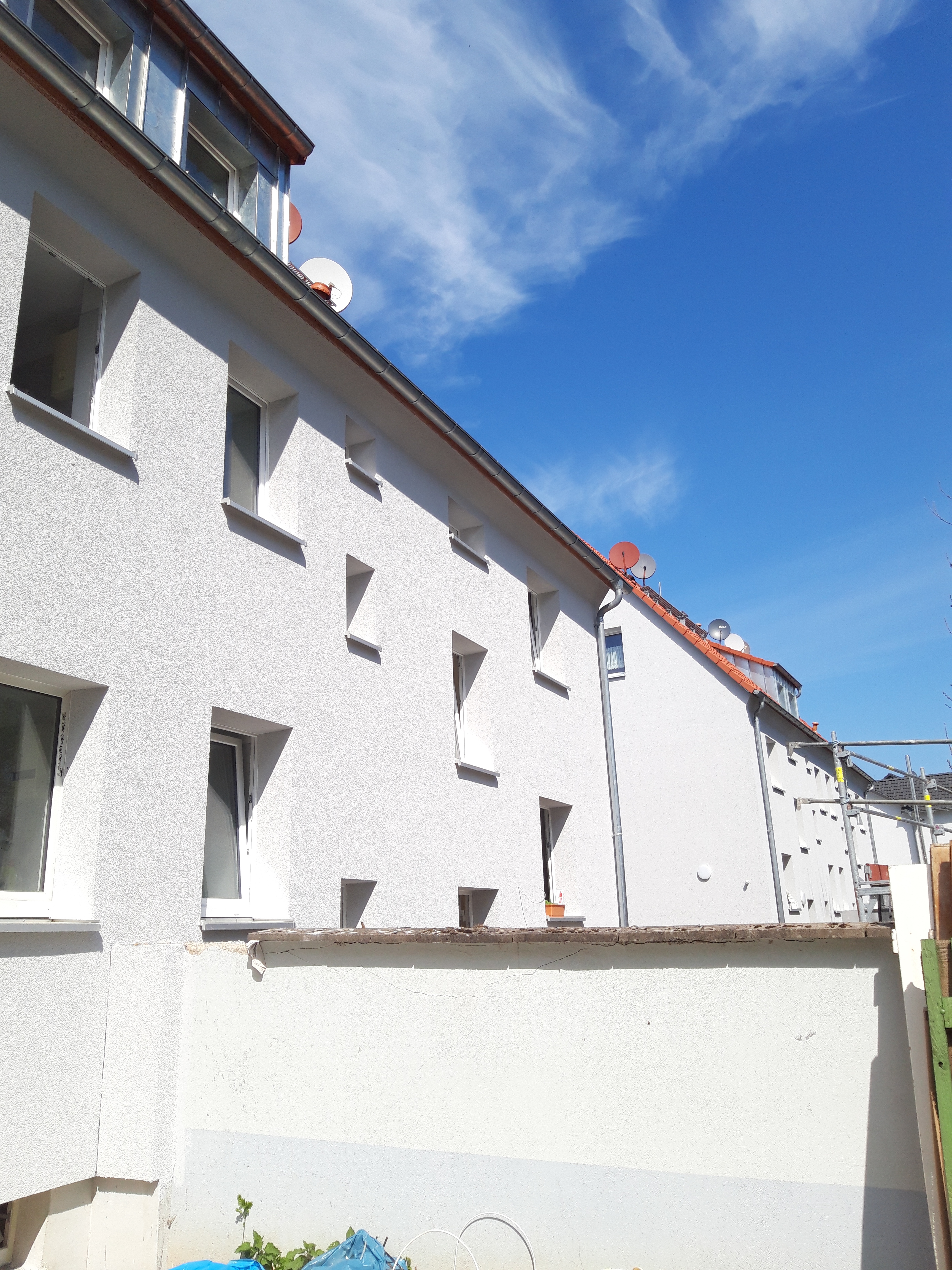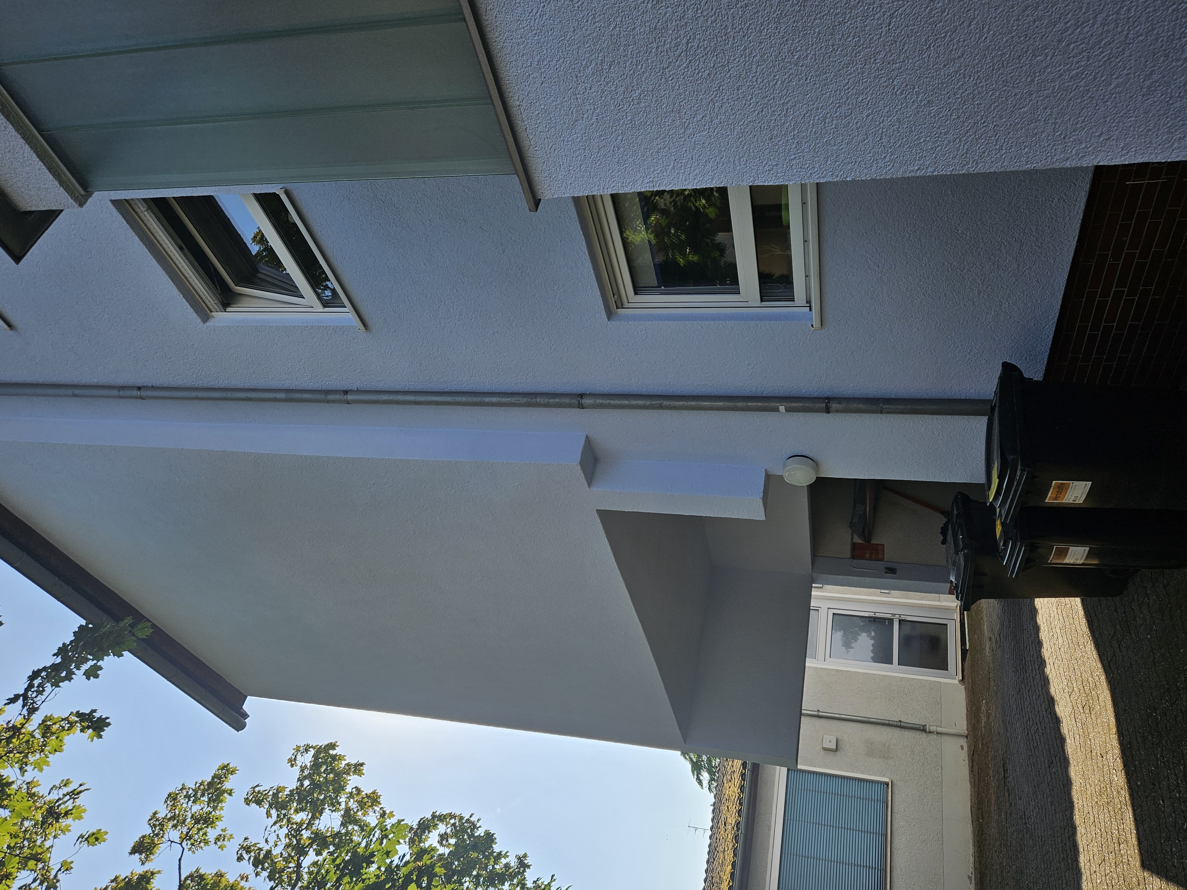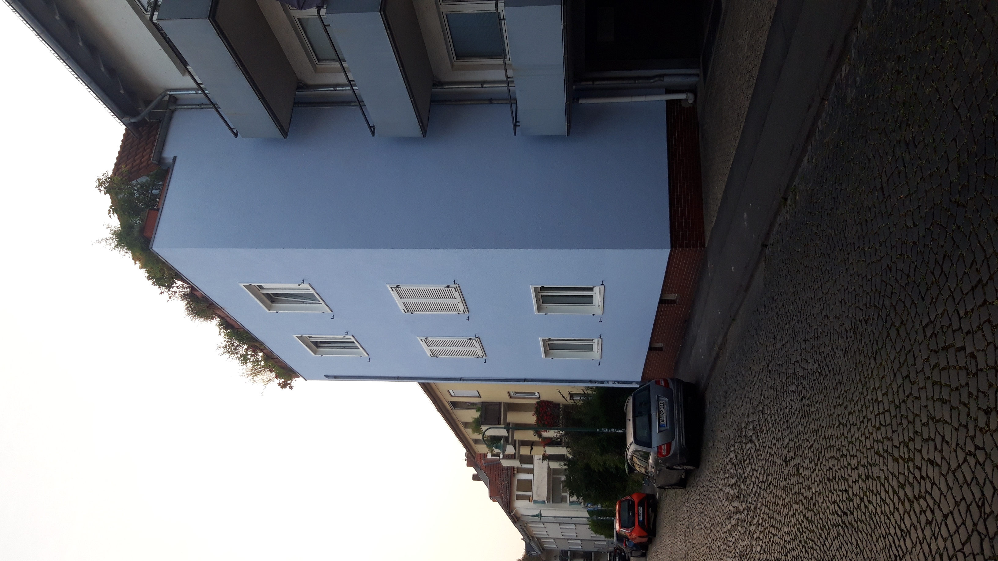 Neubau MFH Die Aussenhaut wurde mit 16 cm Dämmung verkleidet und mit einem 3 mm Kratzputz verputzt .Der Sockel wurde mit einer Besenzutechnik bearbeitet.Ausführung 2018.