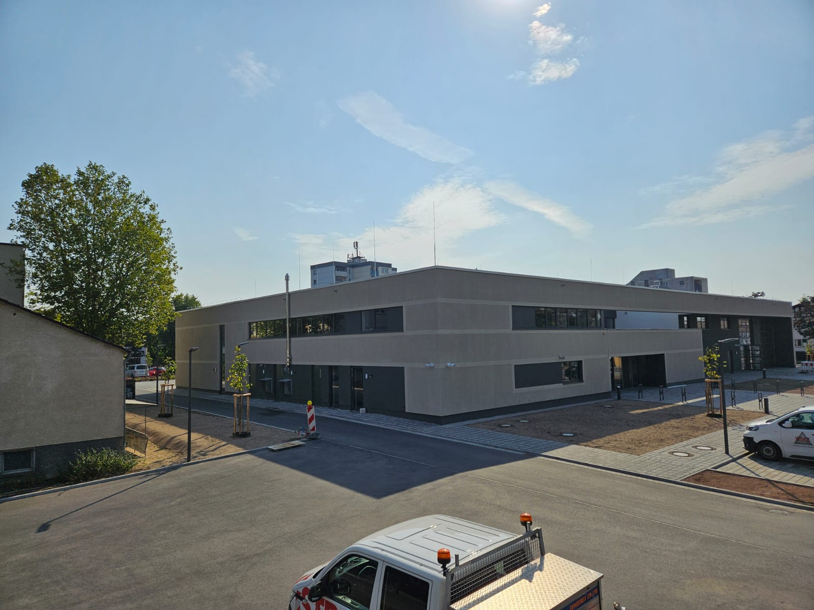WDVS_System Hotel Raunheim .Die Fassade wurde mit 16 cm Dämmung verkleidet und verspachtelt.Anschließend wurde ein 3 mm Kratzputz und 1,5 mm Kratzputz getönt aufgetragen (1)